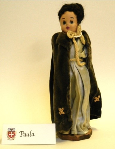 Collection Doll Collection Item Historical Dolls: Paula (Ancient Rome) 999.17.26 Download Metadata LabelHistorical Dolls: Paula (Ancient Rome)DescriptionPaula, a Roman noblewoman, who founded a hospital in Jerusalem as well as a religious community for women.Museum Item Identifier999.17.26 Museum Item Information Sub-CollectionHistorical Dolls by VGH StudentsAccession Number999.17.26CreatorVGH Students (cl. '46) Under Direction of Elizabeth (Scoones) StewardLocationBoxes 1 and 2 / Dolls Item Qualities Decade DepictedPre-1890Year Created1947-1950DateJanuary 3, 1946 Continue browsing Historical Dolls: Mary Agnes Snively (1847-1933) Historical Dolls: A Deaconess of Kaiserworth Back to items list