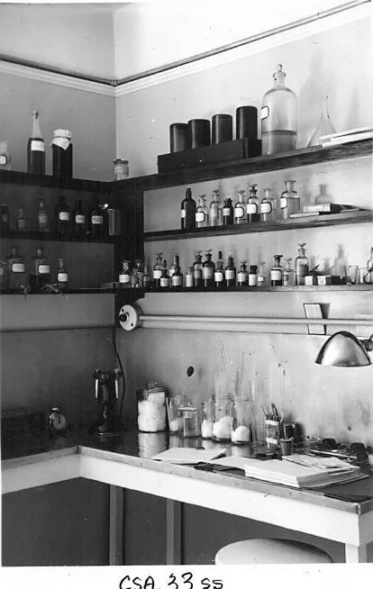 Collection Image Collections Item Class of 1941 Collection: Interne’s Lab CSA.33ss Interne’s lab Download Core Metadata LabelClass of 1941 Collection: Interne's LabDescriptionMedical supplies in the Interne's Lab.Archival AddressCSA.33ss Archival Information Accession NumberD00489Sub-CollectionClasses and Student Activities (CSA)Box2Old BoxD022DonorNettie Burge? Item Qualities Formatblack and white | photographic printSizeunknownDecade1930-1939 | 1940-1949Precise Date1938-1941DateJanuary 1, 1939 Continue browsing Class of 1941 Collection: Clara Kwong nursing Evelyn Hunter Class of 1941 Collection: Corner in Residence Back to items list