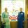 The glass artist who created the memorial window speaking at the podium at the Dedication Ceremony for the VGH SON stained glass window at Laurel Pavilion, now Pattison Pavilion, May 2, 1999.