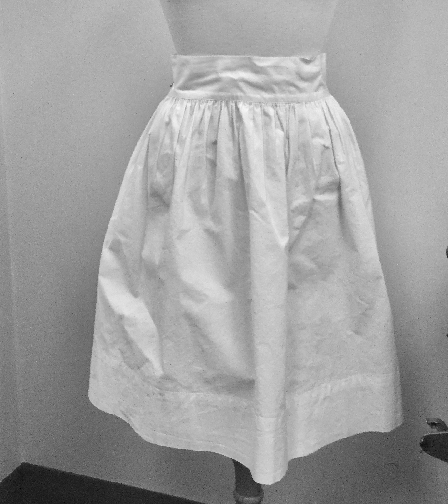 Collection Textiles Collection Item White Gathered Apron 2016.13.1f Apron, gathered Download Core Metadata LabelWhite Gathered ApronDescriptionWhite uniform apron, without a bib portion, as would have been worn by junior students in the first half of the 20th century.Sub-CollectionUniforms | Aprons Museum Information Museum Item Identifier2016.13.1eAccession Number2016.13.1eLocationB3 Box 2Year Accessioned2016 Item Qualities Materialswhite cotton fabricConditiongood Continue browsing White Uniform Cuffs Long Cape, 1944 Back to items list